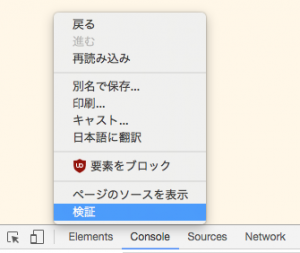 画面内を右クリックして「検証」をクリック。