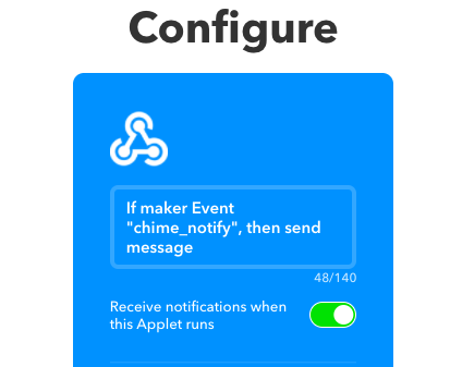 チェックを入れたままにするとこのAppletの実行時に、LINEとIFTTTの2つの通知が来てしまうので、チェックは外しておいたほうがいいです。
