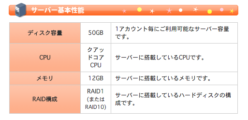 Xserverなどから比べてしまえば多少劣っているのですが、これでも個人レベルでのサイト運営ならば悪くないスペックです。