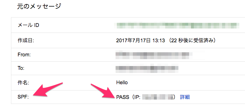 ここで「元のメッセージ」の「SPF」欄がPASSになっていれば成功です。