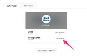 まずは、LINE BUSINESS CENTERよりMessaging API用のアカウントを作成します。