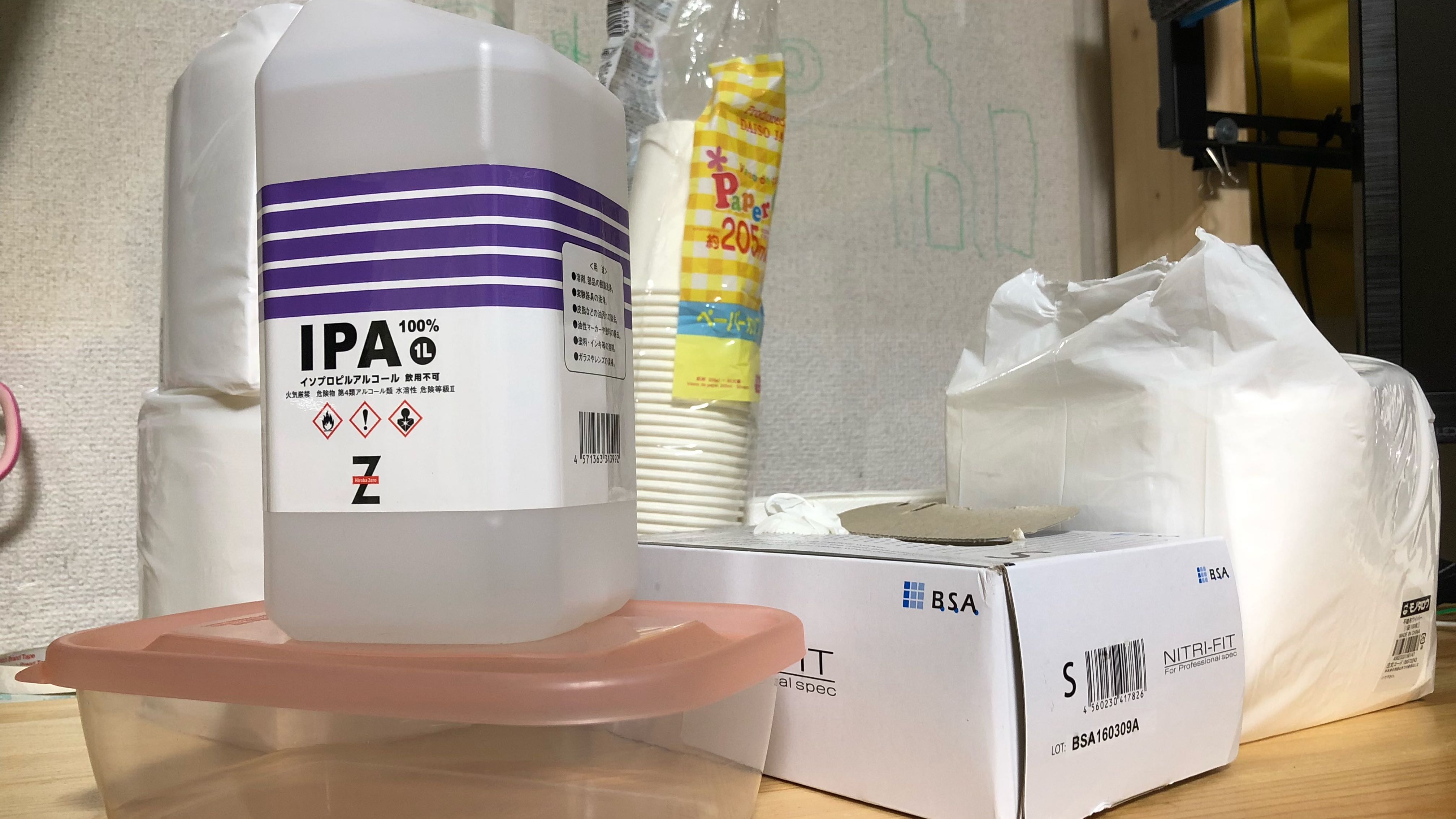 IPAはAmazonで売っている1Lのものを使っていますが、光造形をずっと使い続けるのであれば、あと置き場所があるのならば、4Lのものでも良いと思います。