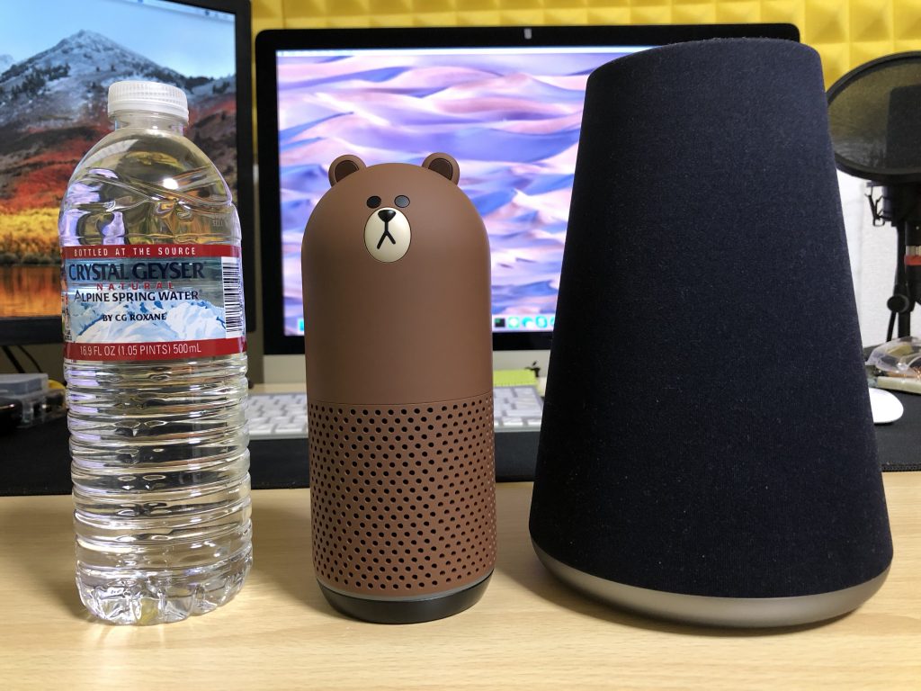 正面から見たとき(左からペットボトル水・ClovaFriends・ClovaWAVE)